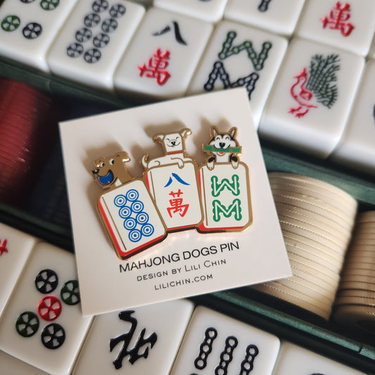 3 LUCKY DOGS MAHJONG PIN