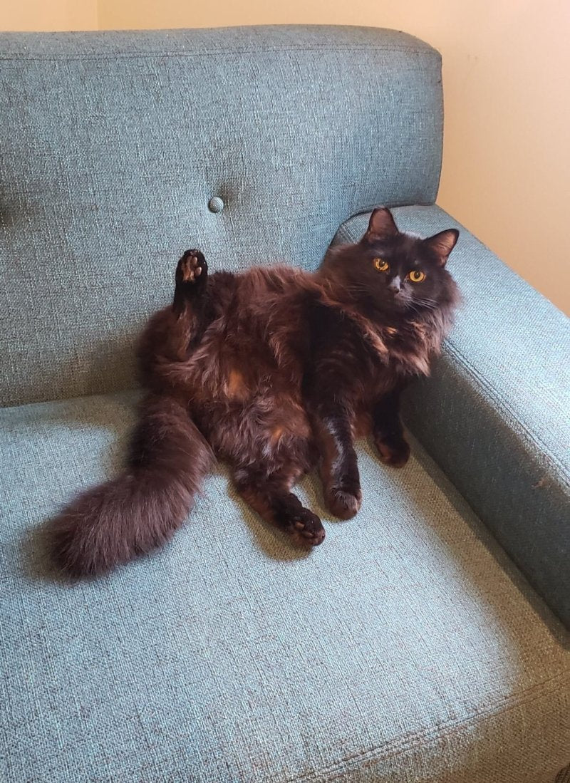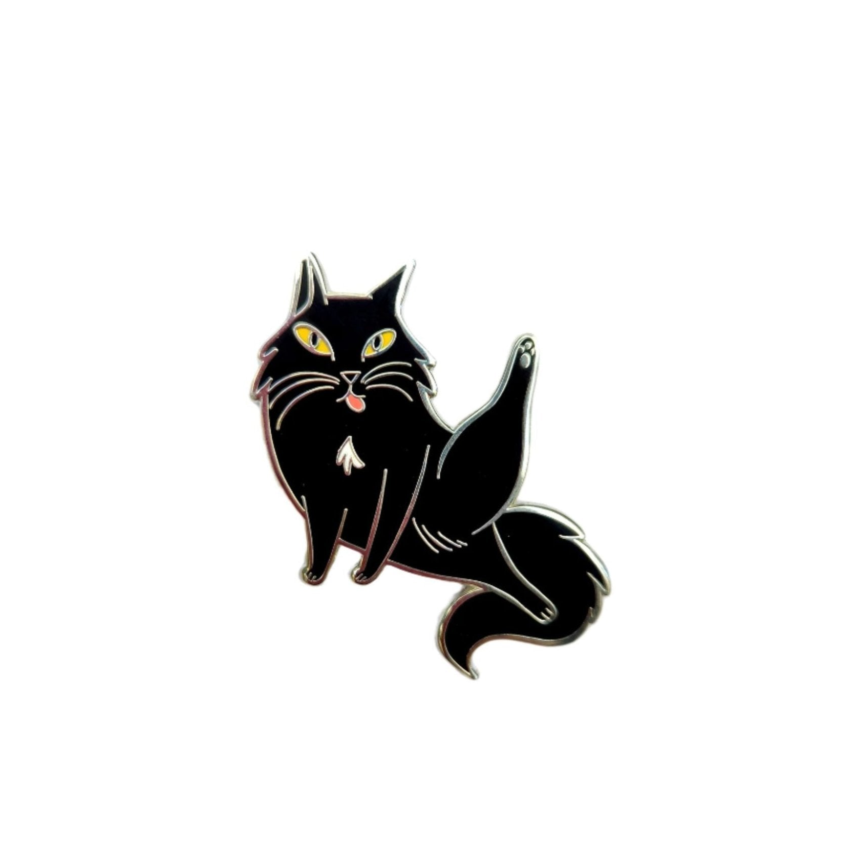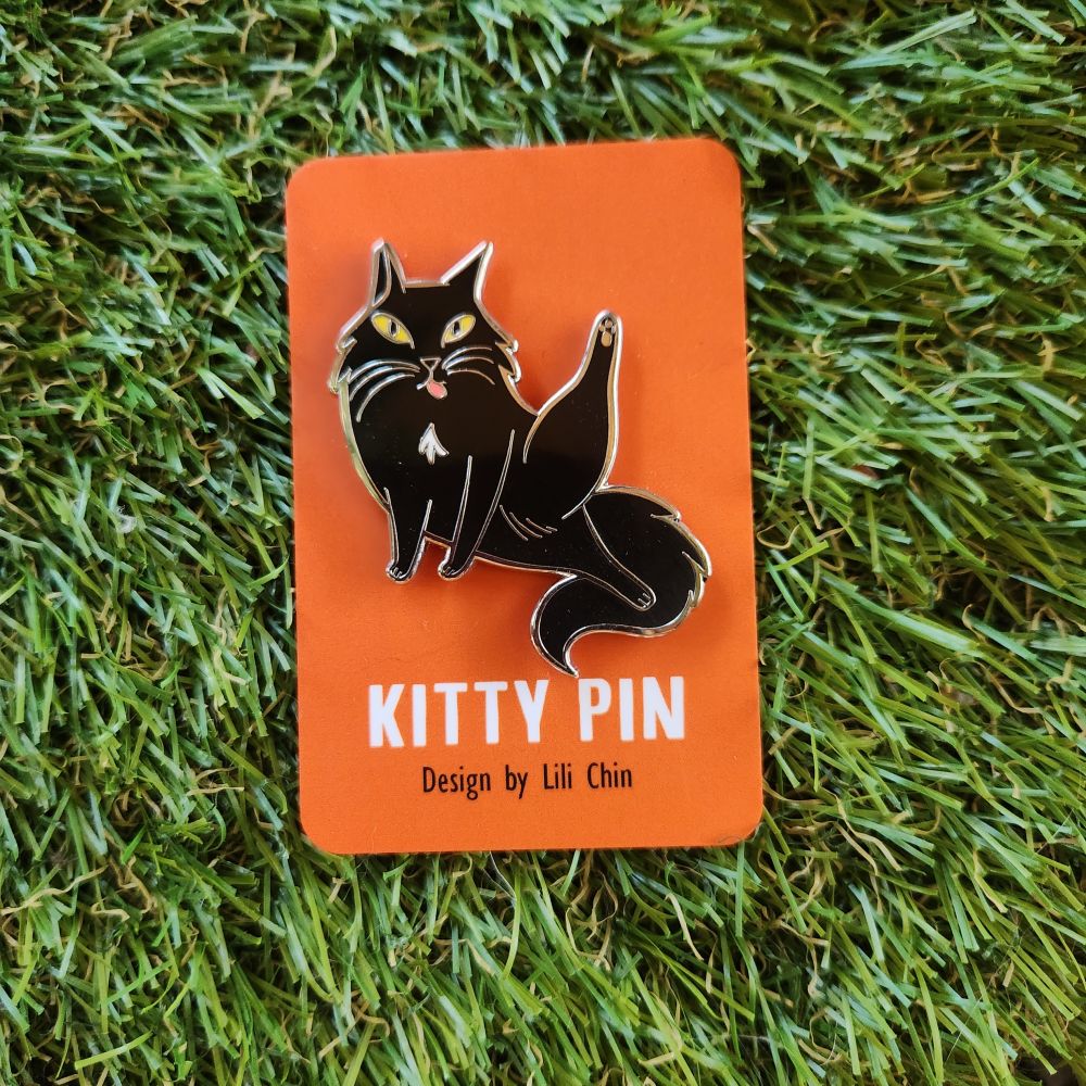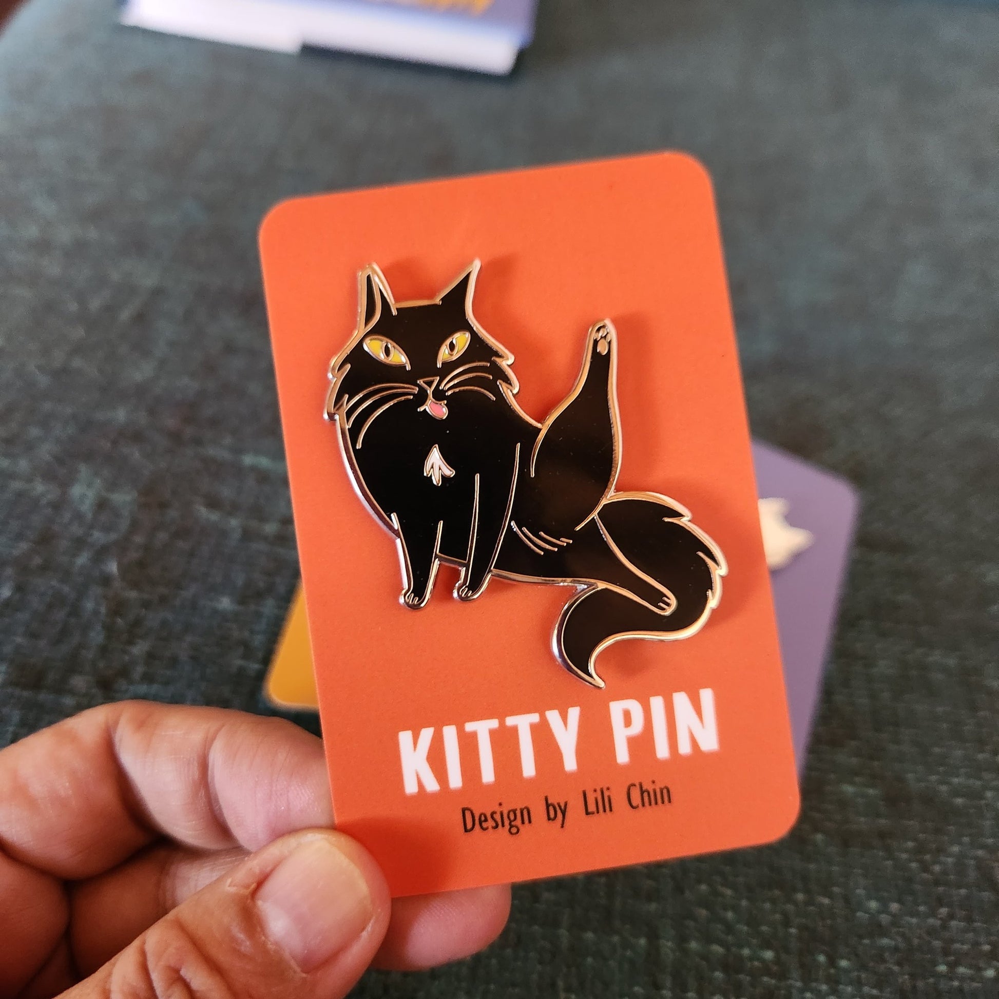 When I saw Lily’s post about this pin, I had to have it, because it looked just like my cat Boo (seen here in her Superboo costume). She even has a tiny white spot on her chest. The in came quickly, was thoughtfully packaged, and the quality is wonderful. I put it right on my backpack at the top, and showed it to everyone at the vet when I brought Boo in today for a checkup. It makes me happy every time I see it, like having a little bit of Boo with me.