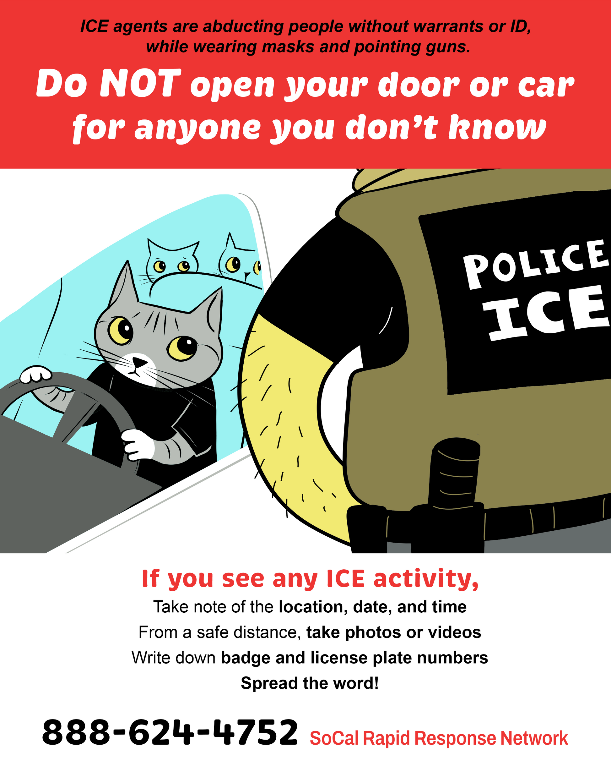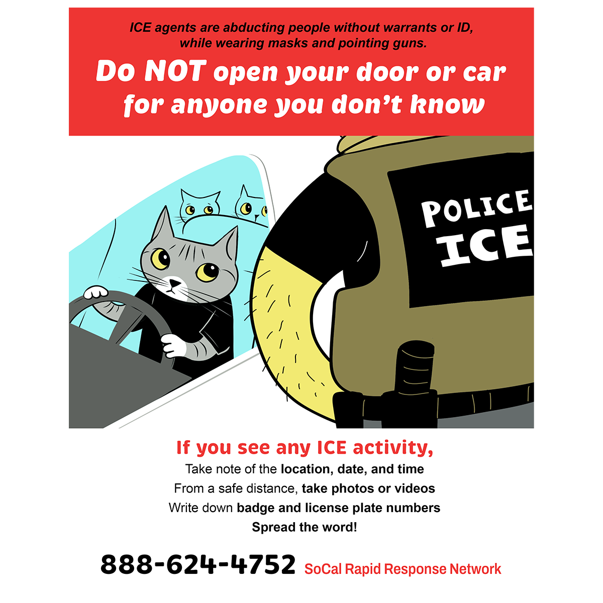 Here in Southern California, Trump's gestapo terrorizes our diverse immigrant neighborhoods, kidnaps people including citizens and children, and locks them up in horrendous for-profit prisons. Everyday, I hear of more abductions happening right here, in my neighborhood.