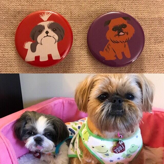 This listing is for THREE 1.25 inch doggie pinback buttons of your choice.