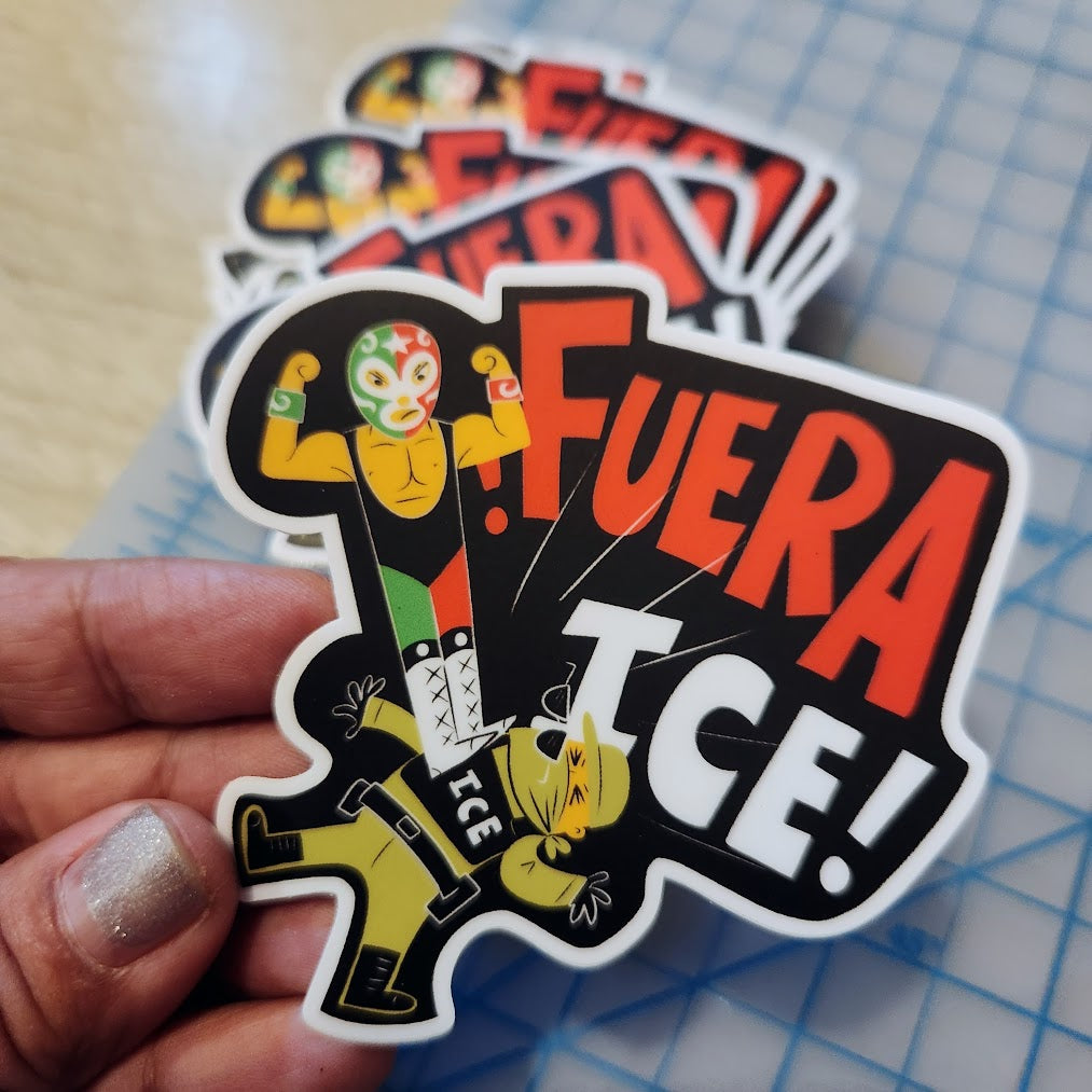¡FUERA ICE! means ICE OUT! Buy this sticker, stick it everywhere!