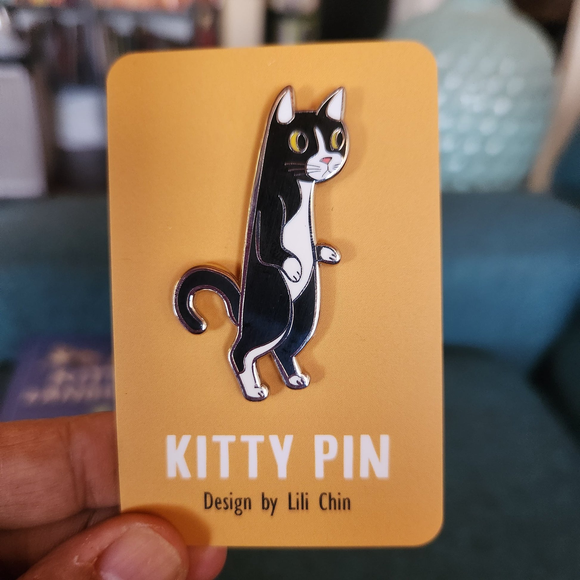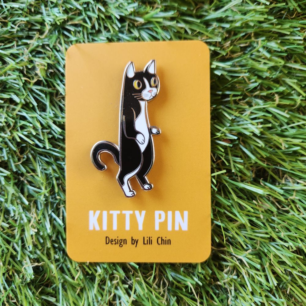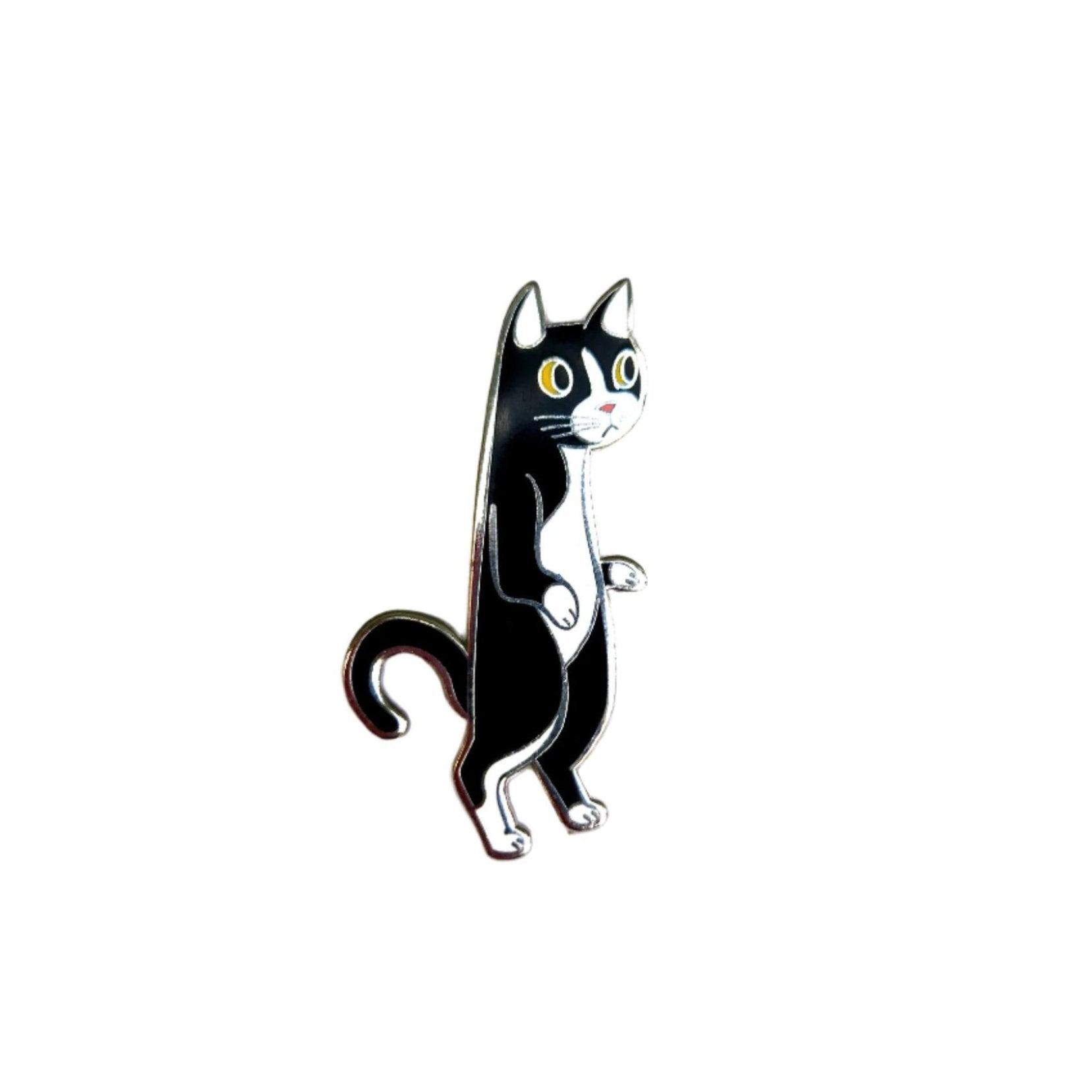 This large striking tuxedo cat pin is inspired by cats who stand up like meerkats. Check out my Kitty Language book for the reference images and explanation!
