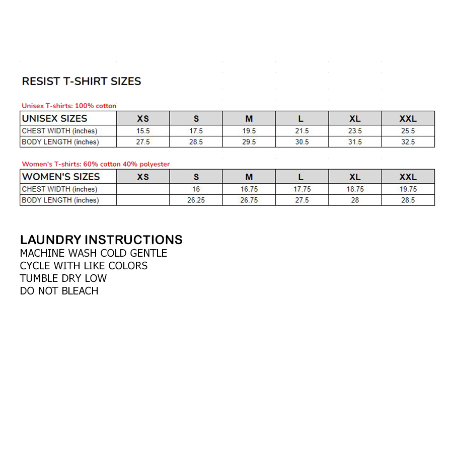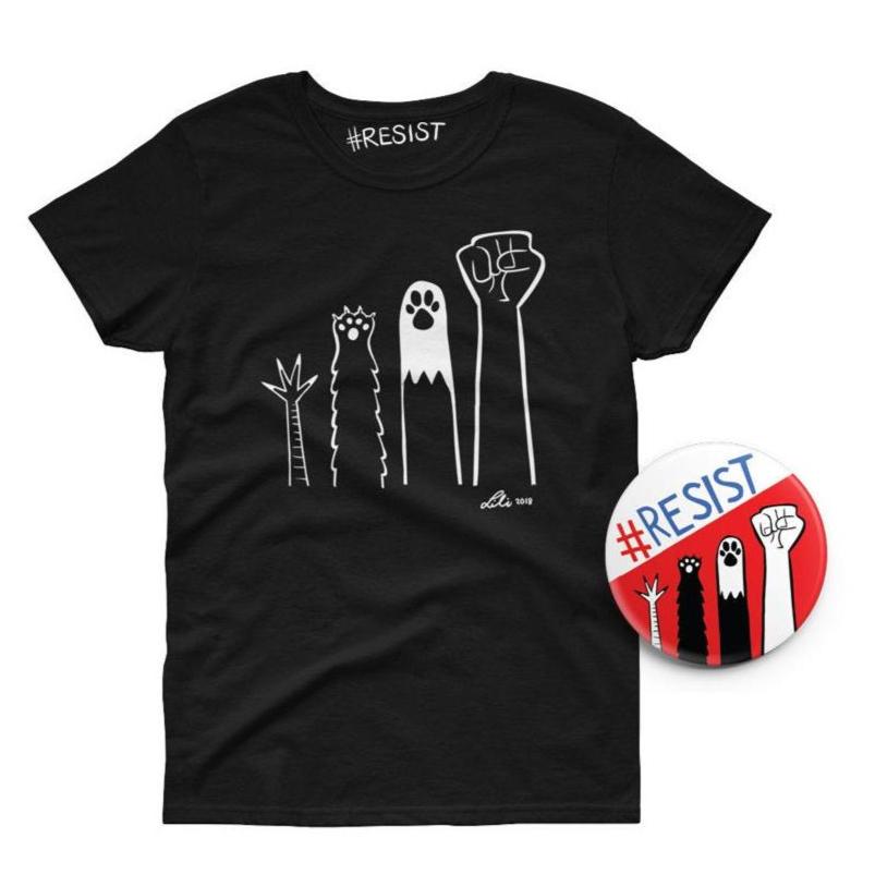 This is a locally screen printed #RESIST t-shirt that comes with a free RESIST button! (limited quantity)